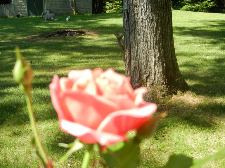Well, this weekend has been a stellar example of perfect summer weather on both days and I took Sunday morning to take my tea outside. I usually sit out on the deck that runs parallel to the stream, but today decided to sit on the end deck so I could see birds in the bird bath. No such luck with the birds, but I certainly enjoyed the tea.