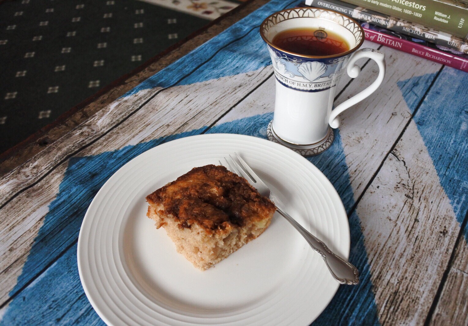 So, I broke two rules today: I had tea with COFFEEcake and drank Scottish BREAKFAST tea at 4 pm in the afternoon.