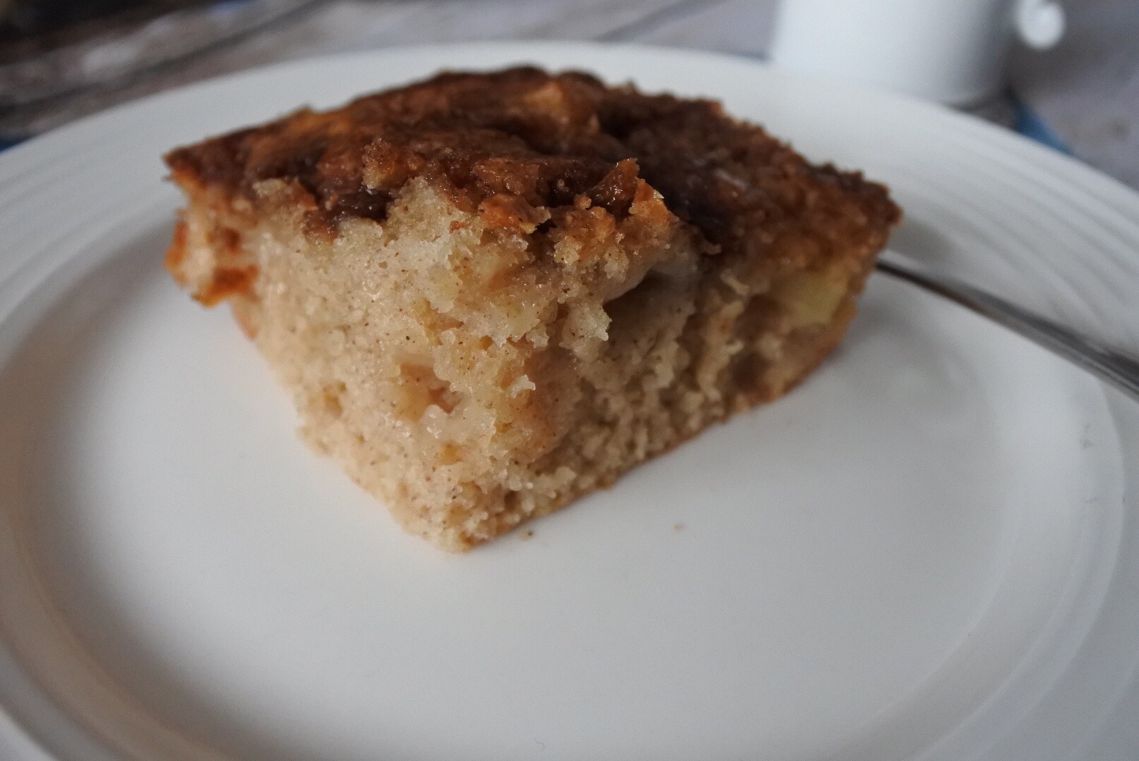 The cake is very easy to prepare and I had some Granny Smith apples already on hand. Perhaps a tad over baked, but still moist and tasty and a perfect treat for a snowstorm.