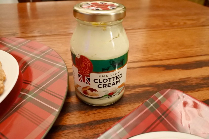 When I ordered the three scones mixes, I also ordered some Clotted Cream. Then I found an unopened gift of homemade jam that I had also received from said friend who had gifted me the gift card. It was a cinnamon jam…my favorite!