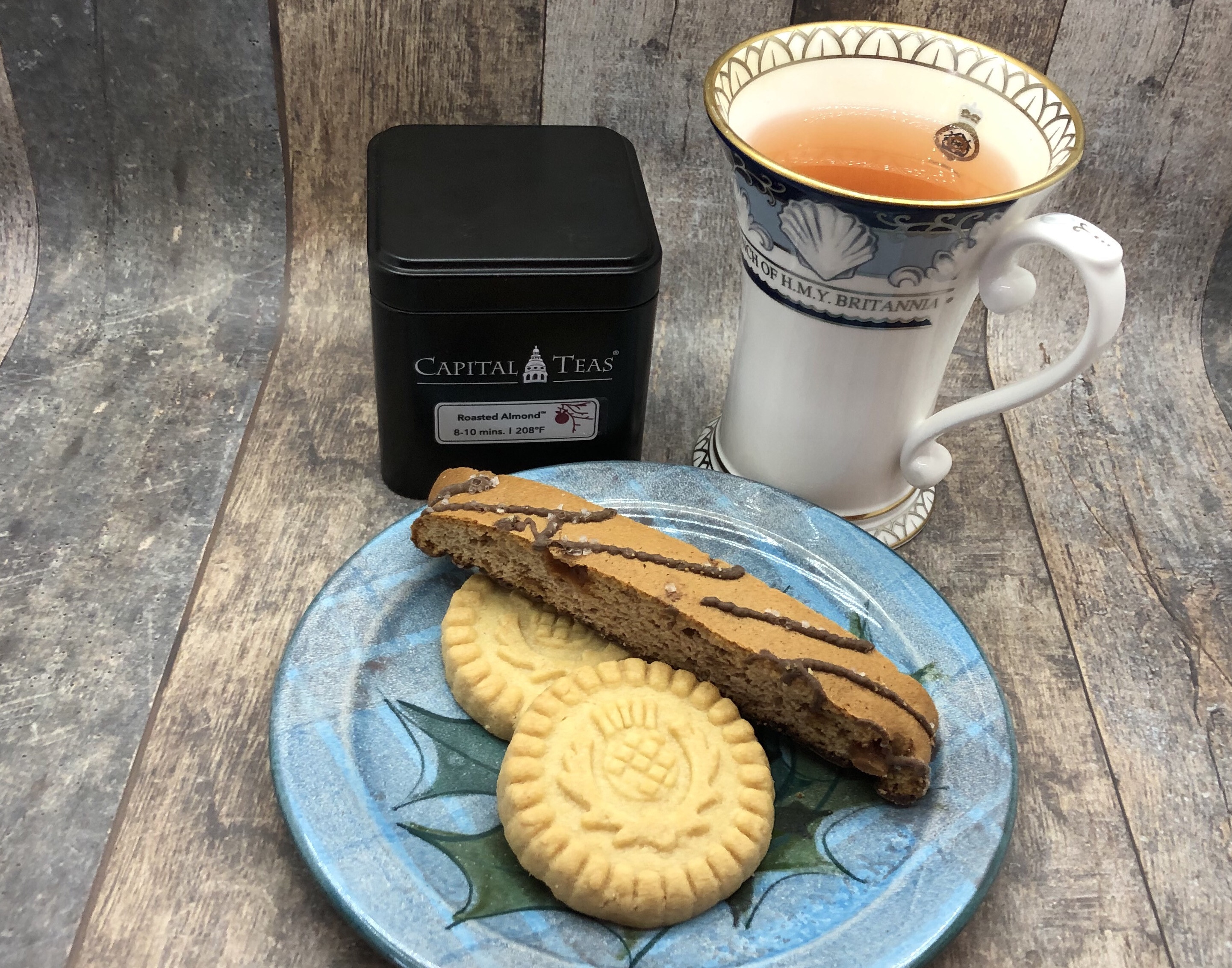 My niece bought me three small tins of loose tea from Capital Teas for my birthday. One tin is a green tea, one is a fabulous Cream Earl Grey tea, and the third is a new flavor called Roasted Almond. I was intrigued!