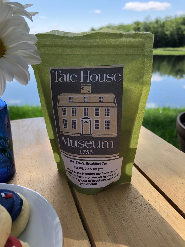 The tea I chose today is Keemun loose tea created by Nellie’s Tea Co. that I bought during a visit to the Tate House Museum in Portland, Maine. The Tate House is a wonderful pre-Revolutionary Colonial house built in 1755 for Captain George Tate (1700-1794) and his family, who had arrived in the Colonies from England. Tate served as the Senior Mast Agent for the British Royal Navy, overseeing the cutting and shipping of white pines from Maine to England. The museum/house is well worth a visit.