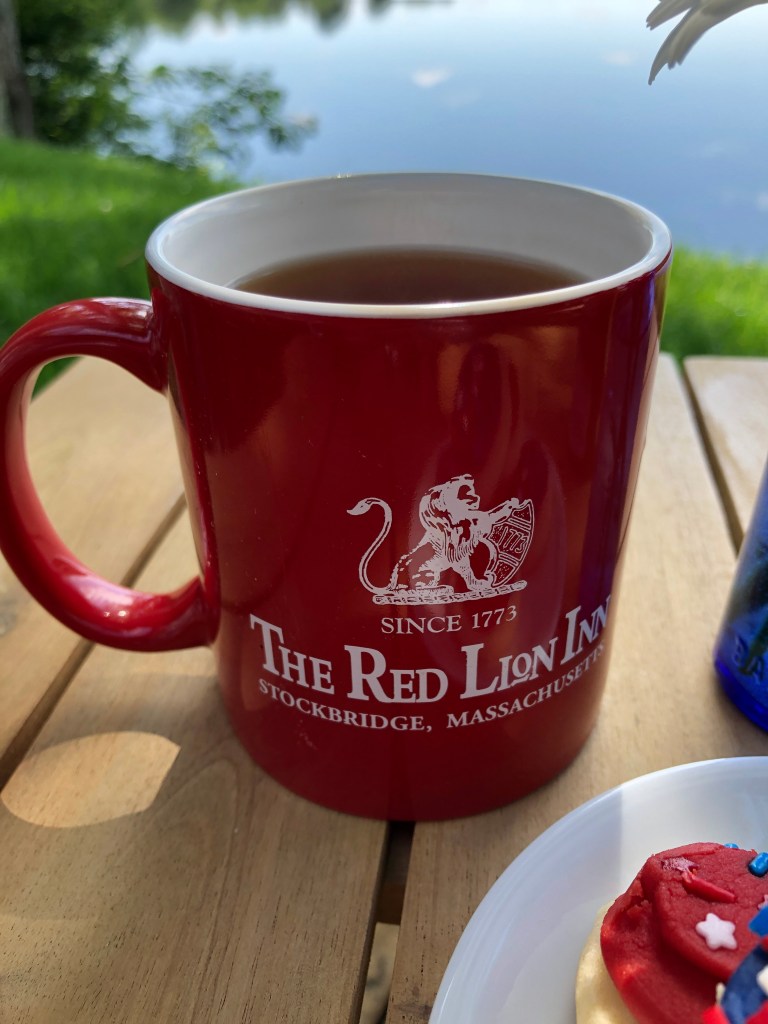 The RED mug from the Red Lion Inn in Massachusetts, is an historic lodging that Dave and I have stayed in many times. We love it’s rustic charm, sprawling porch, and creaking floor boards. In 1773 a small tavern called Red Lion was established on the corner where this very popular New England inn now stands. The people of Massachusetts were detrimental in fighting for justice and freedom from English rule: the “hardness and valor” which the red in the flag represents.