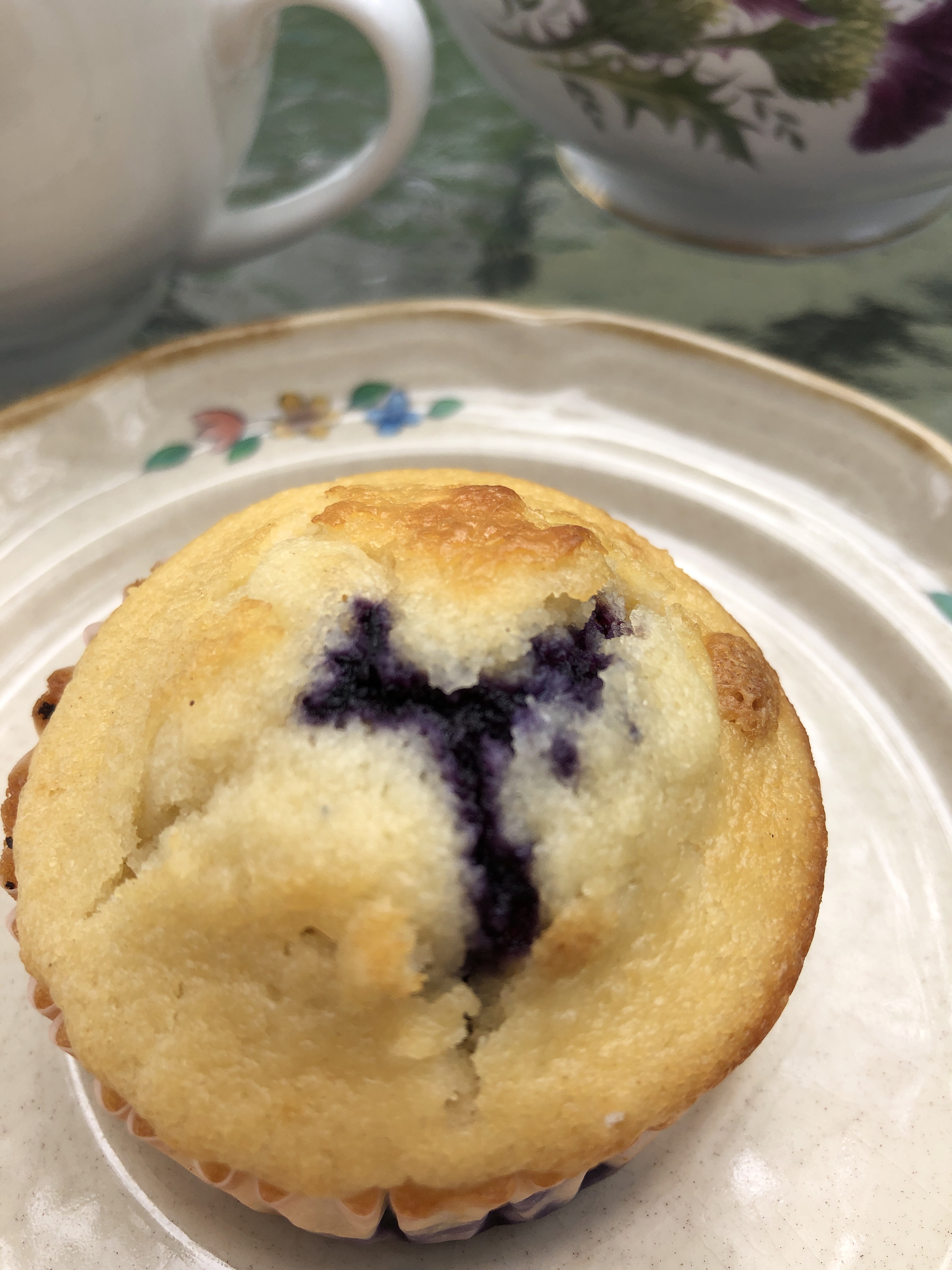 So, I whipped up a small batch of six. I was worried when lifting them from the muffin tin that they hadn’t baked long enough due to the weight of the muffins. But that was only due to how plump the blueberries were and the amount of juices they distributed into the batter.