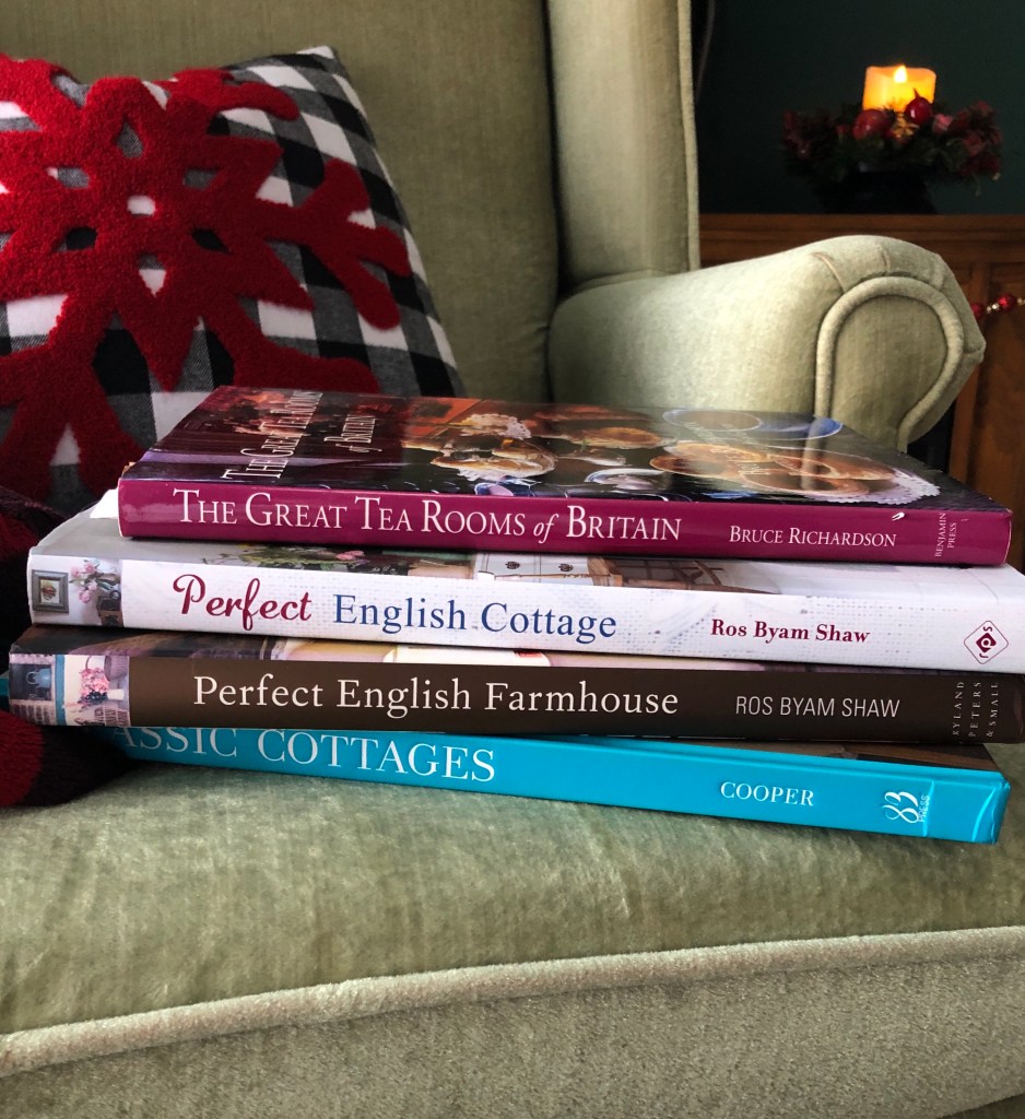 Oh, and because there wasn’t already ENOUGH sugar in this setup, I grabbed a couple of newly baked and decorated sugar cookies. All this sugar will keep me sufficiently alert to look through all of my favorite photo books about cozy English cottages and tearooms. Can you tell I’m a wee bit of an Anglophile?