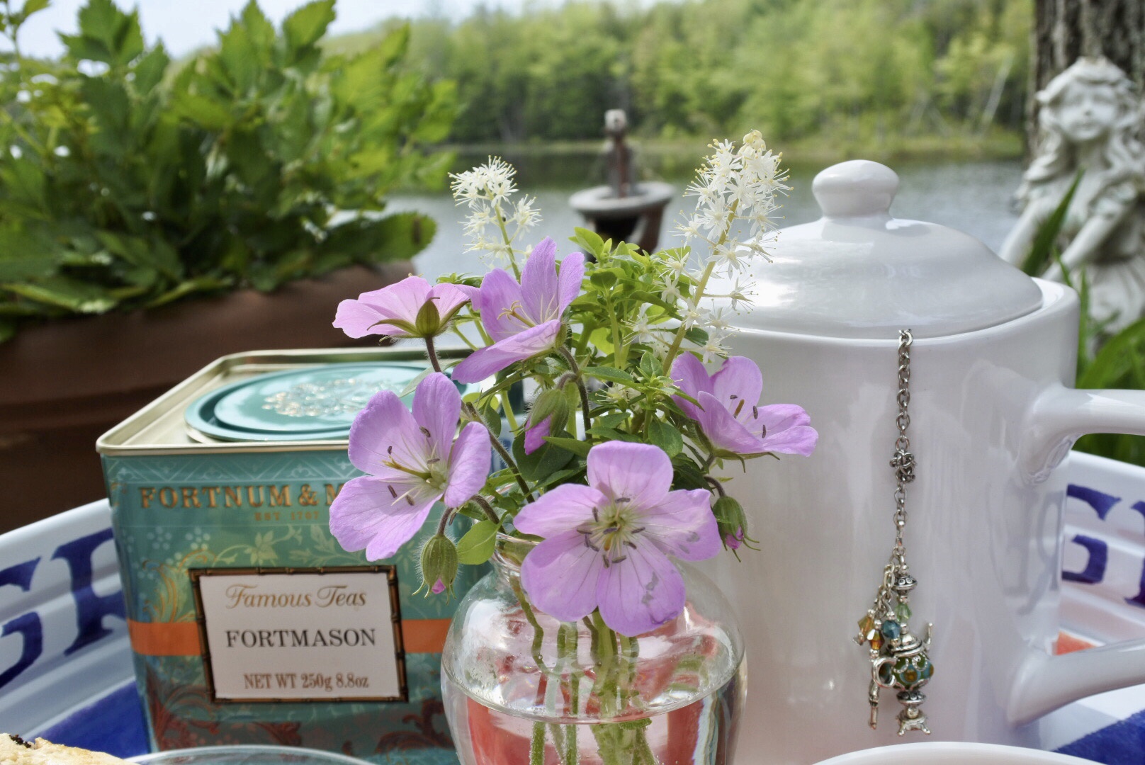 So it was fitting and poignant that my London tea was held in front of Dori’s garden fairy on what is closing in on the 9th anniversary of her passing in late May, 2012.