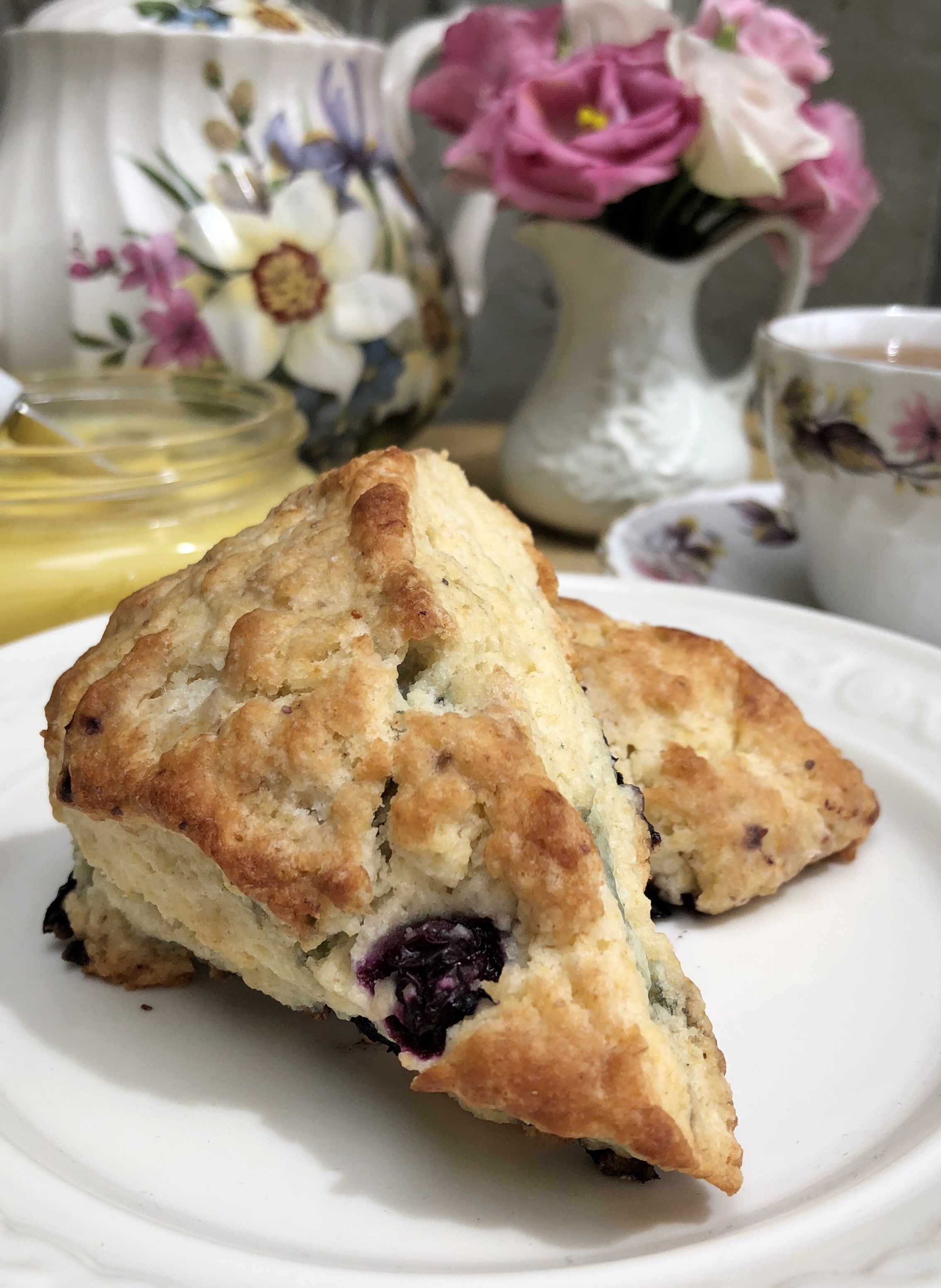 On a cloudy, but rain-free day last weekend, I decided to heat up the stove and bake some blueberry scones. And now that I know how to make my own lemon curd, the sticks of butter and flour were flying!