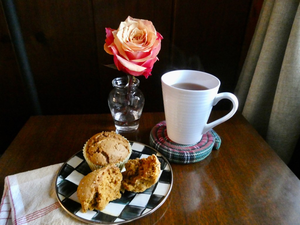 Pumpkin muffins and French Vanilla chai tea: Could this BE any fallier? I whipped up a batch of my favorite, and easiest muffins (recipe below). They pair perfectly with Twinings chai tea on this cloudy, rainy Sunday morning. #autumnflavor #pumpkin #muffins #fall #chai