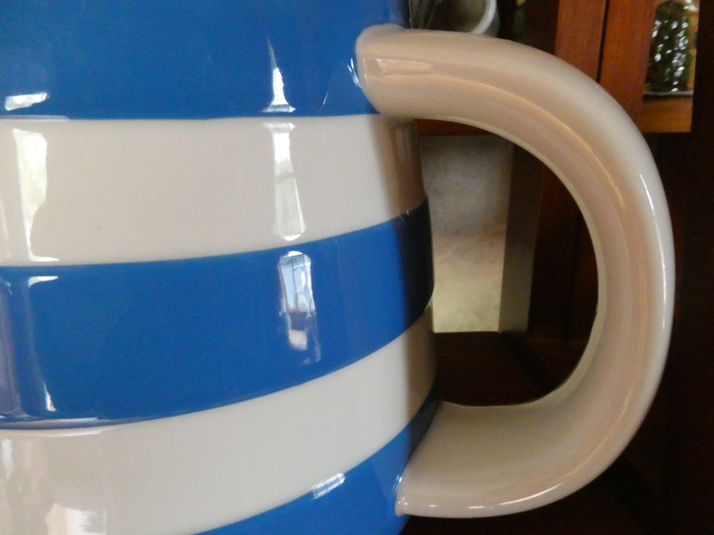 Oh, and because I still wanted a Cornishware® teapot, during their next “seconds” sale, I DID order a smaller, but different style teapot. I DID read the fine print on that one and it’s perfect.