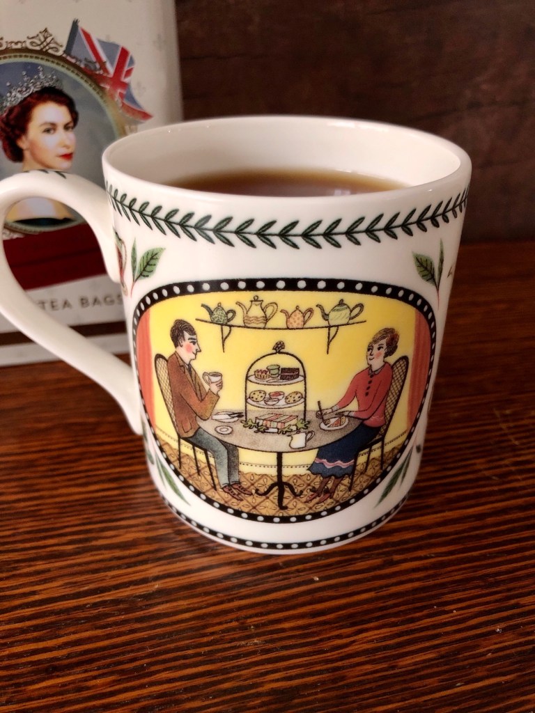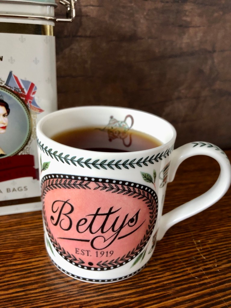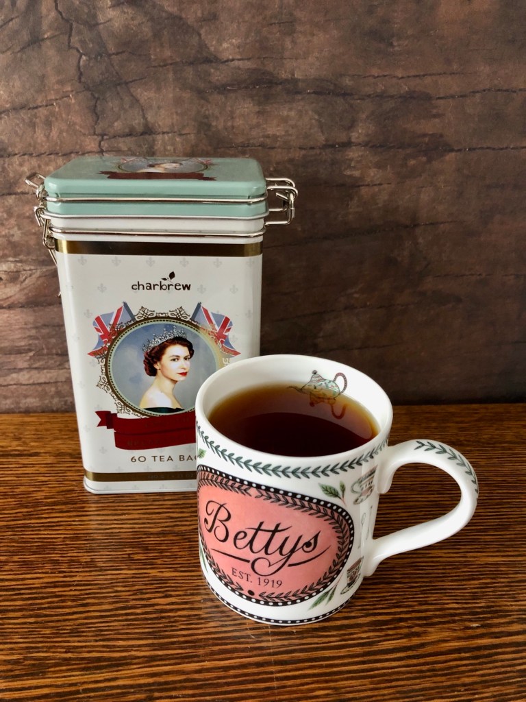 I no longer have any of Betty’s tea on-hand, but I did receive a beautiful tin of English Breakfast Tea from my boss shortly before I retired. I felt it was appropriate for today with the late Queen Elizabeth looking on.