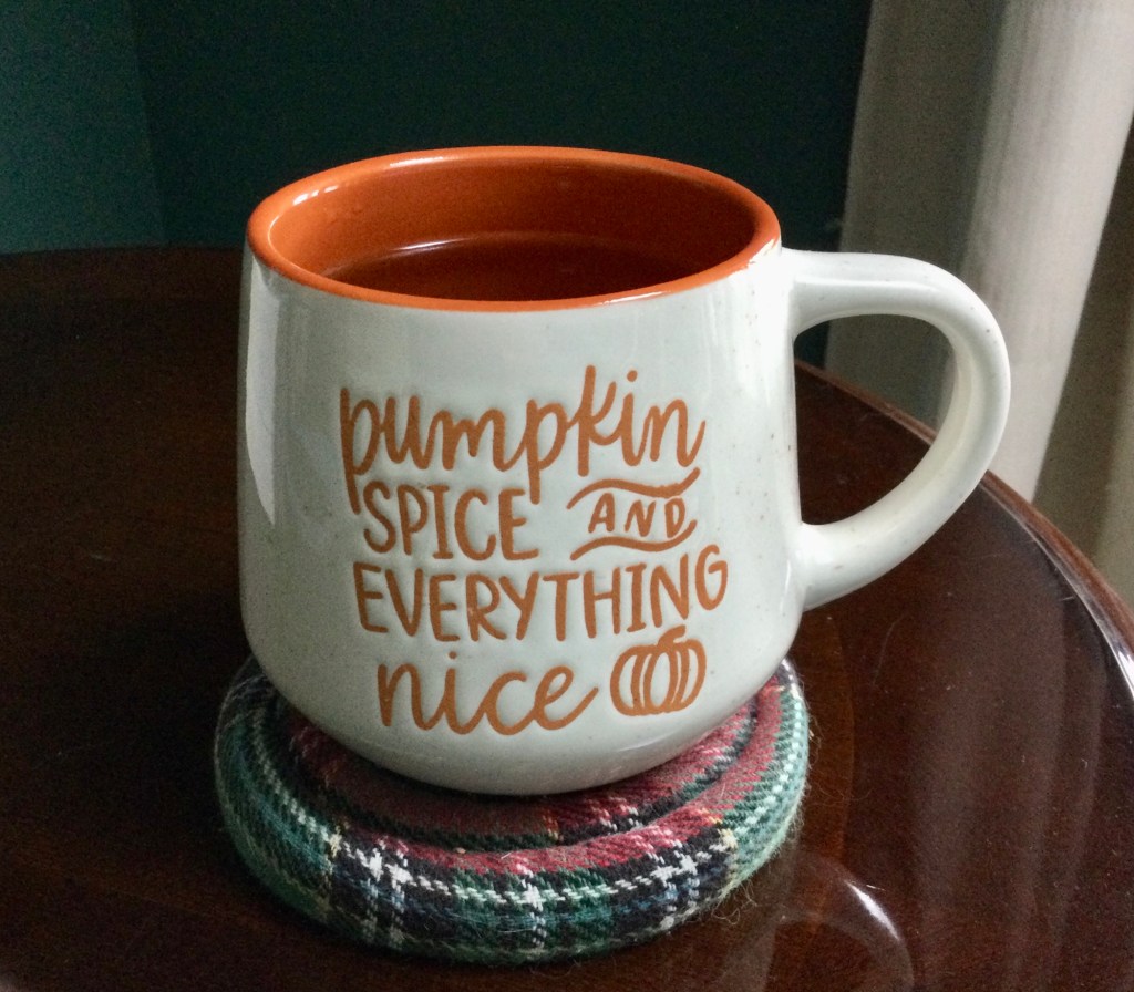 It’s officially fall! So, it’s time to officially introduce you to my first official fall mug that I bought last month. I tried a free sample of pumpkin pie spice chai this morning. Can’t say I am a huge fan, but it seemed appropriate for my first sip in this mug. Cheers!