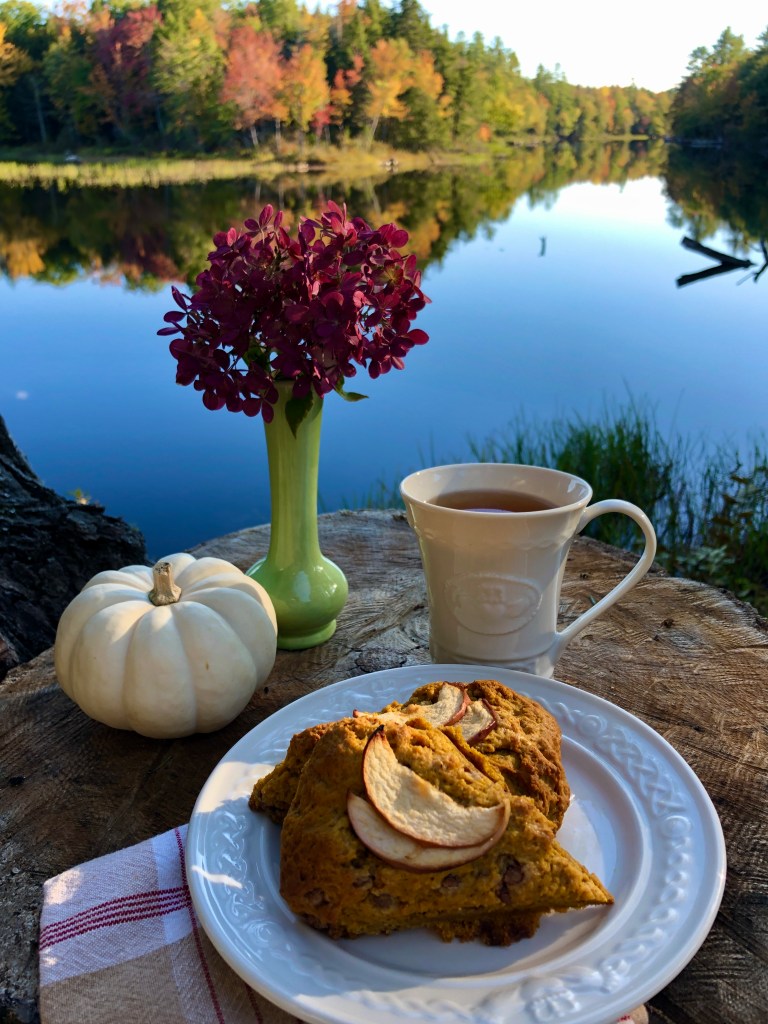 Golden leaves with tinges of amber are starting to display here on the stream. Pumpkin spice is…well, EVERYWHERE, and one starts to seek cozy comforts indoors with baked goods!