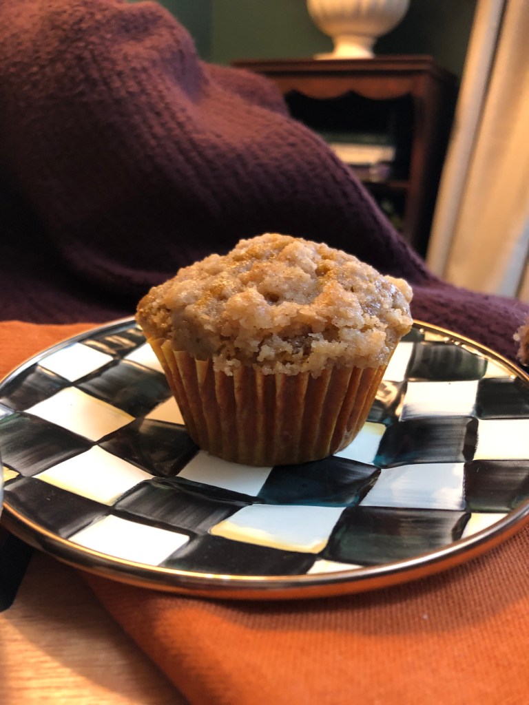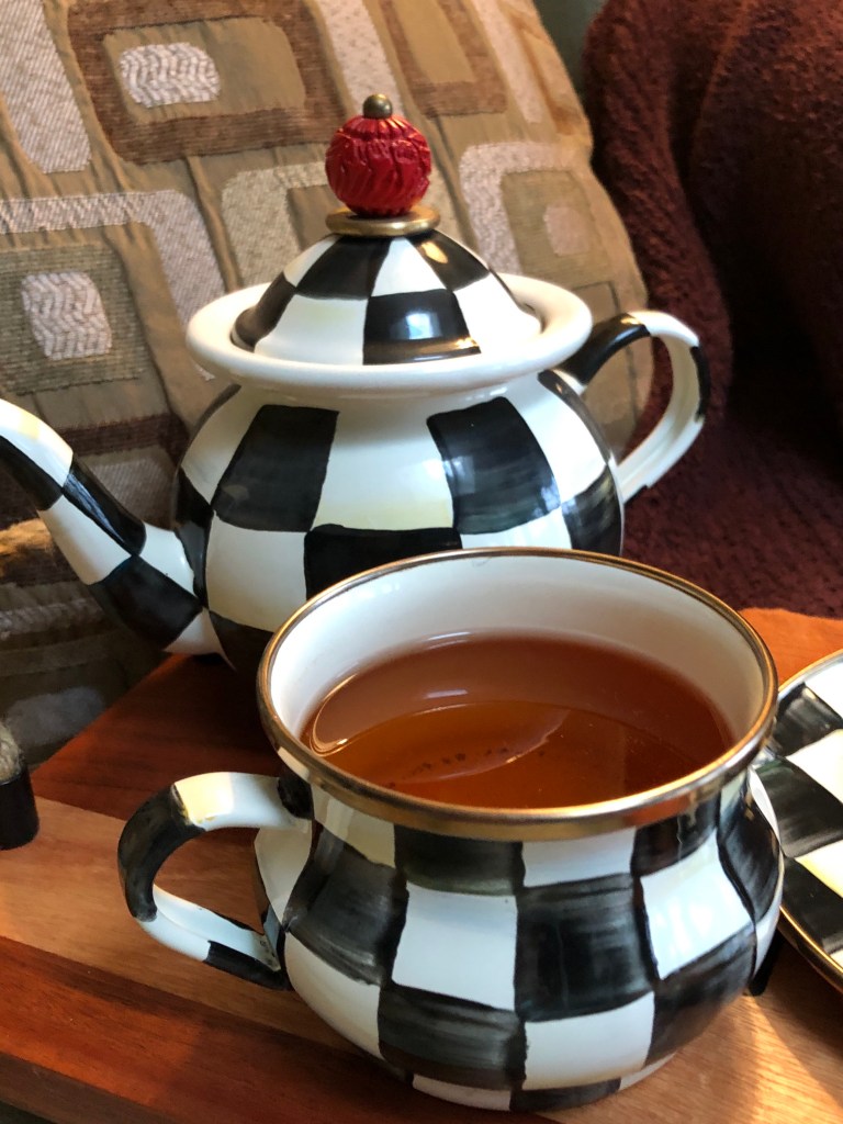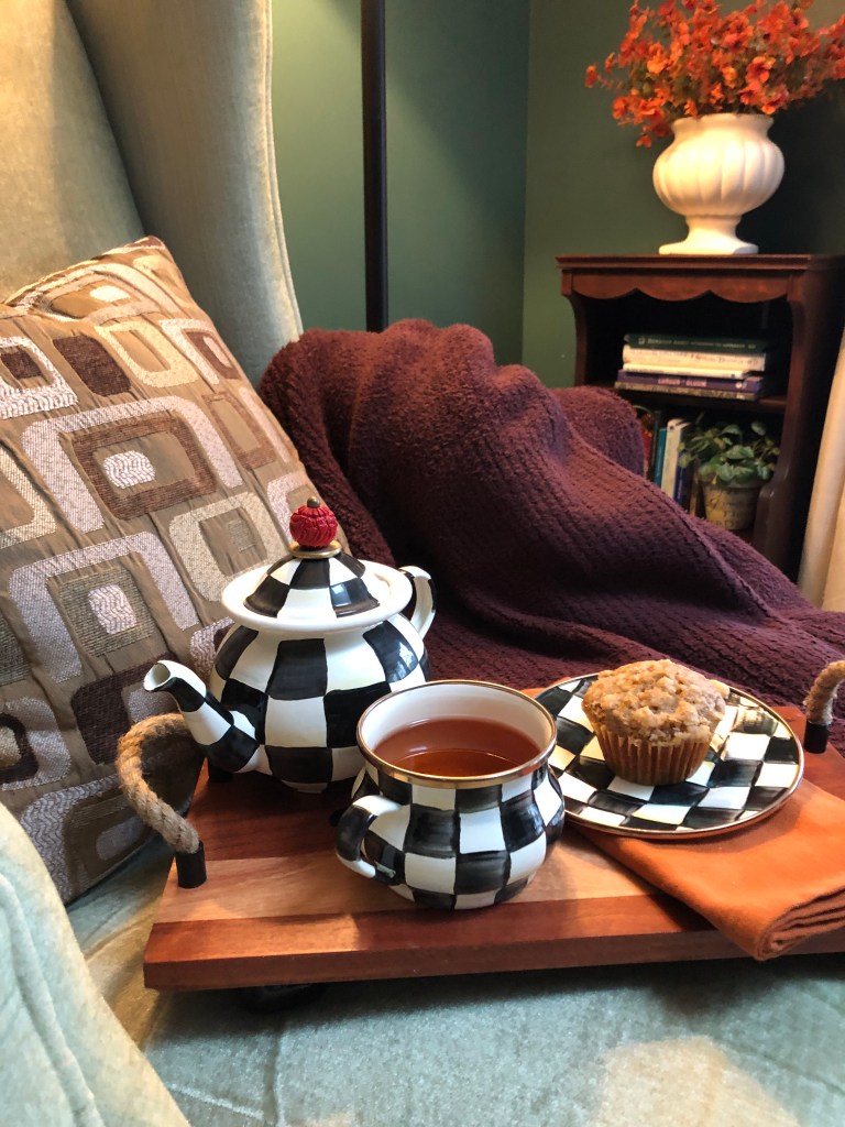 It was a spicy day with warm autumn flavors. I whipped up a small batch of cinnamon-apple muffins and enjoyed a small pot of Sweet Orange Spice tea from Tea Torté. My Courtly Check teapot and mug from Mackenzie-Childs kept things VERY toasty and added a nice pop of pattern.