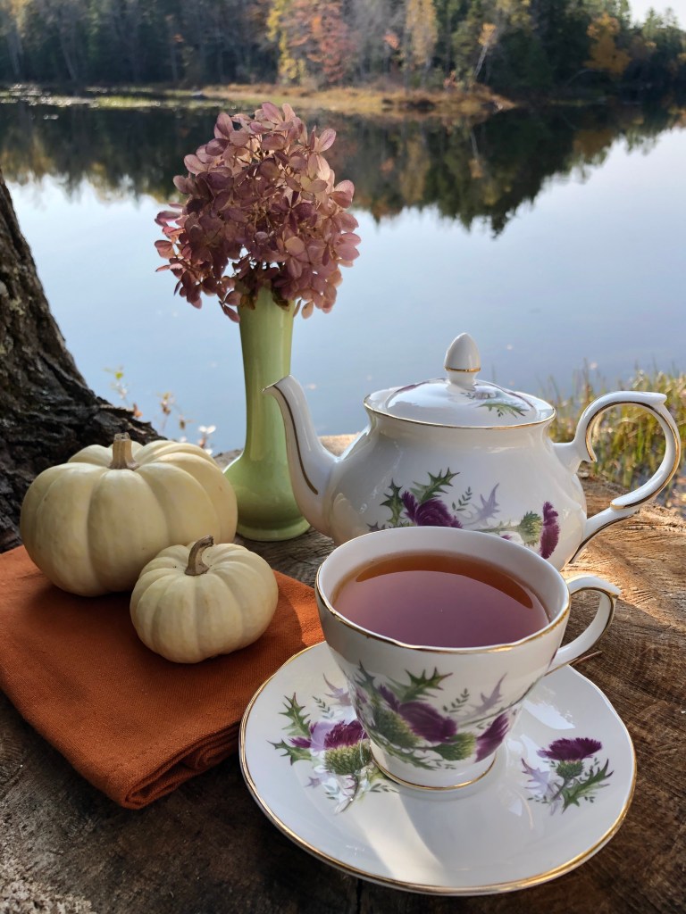 A warm pot of Winter Chai from Tea Forté filled my thistle teapot from Scotland. The dried hydrangeas kept me hanging on to summer.