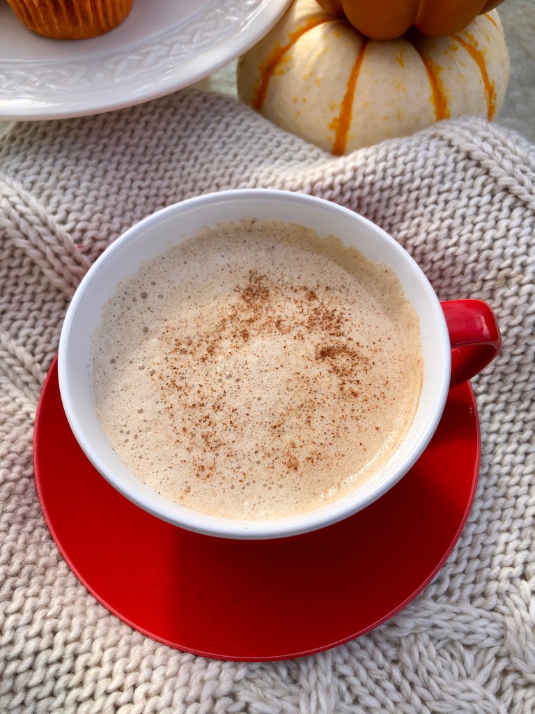 The chai latte also was the perfect companion for my favorite 2-ingredient pumpkin spice muffins that I baked. This time I added Hershey’s milk chocolate chips and they were SO good!