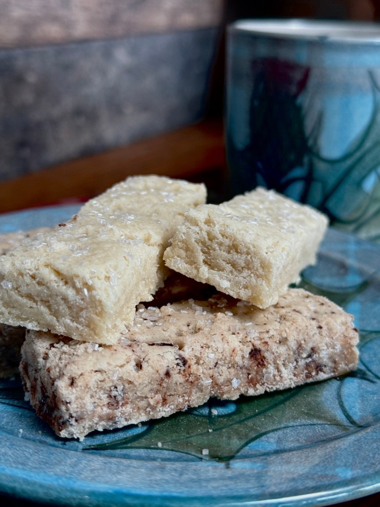 I enjoyed them with my favorite Scottish Tain pottery and some Yorkshire tea with the biscuits on a tartan platter.