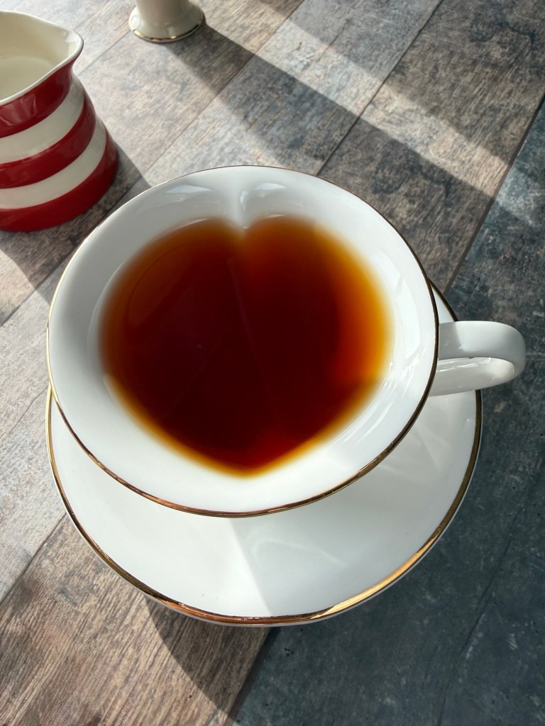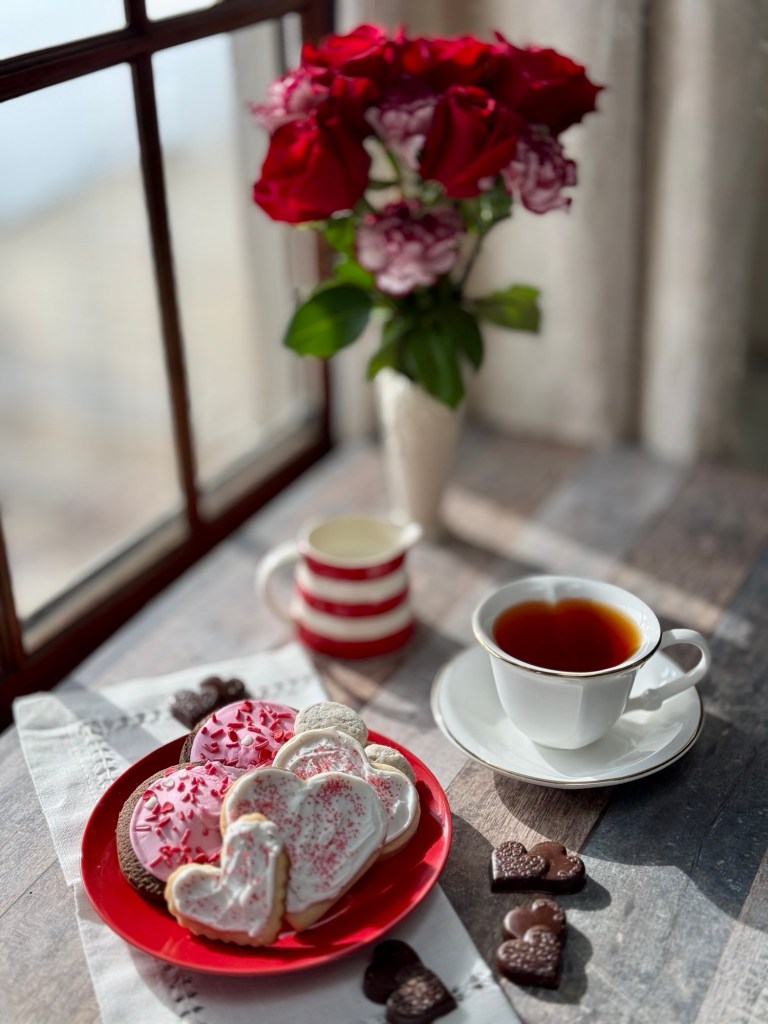 I enjoyed some Earl Grey in my heart-shaped teacup and saucer. My late sister Dori gave me that cup, so it has double meaning to me.