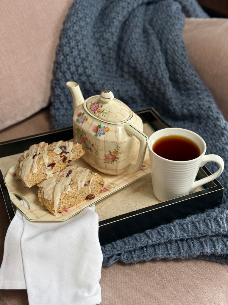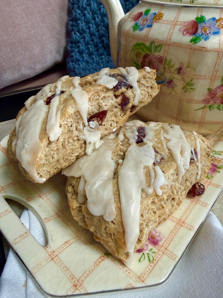 After getting a hair cut in Oakland, I ran across the street to Sunrise Bagel and picked up two of their yummy cranberry, glazed scones. I had hoped for some croissants, but they sell out pretty quickly early in the morning and I was there during the lunch hour. The scones did NOT disappoint. Yummy!